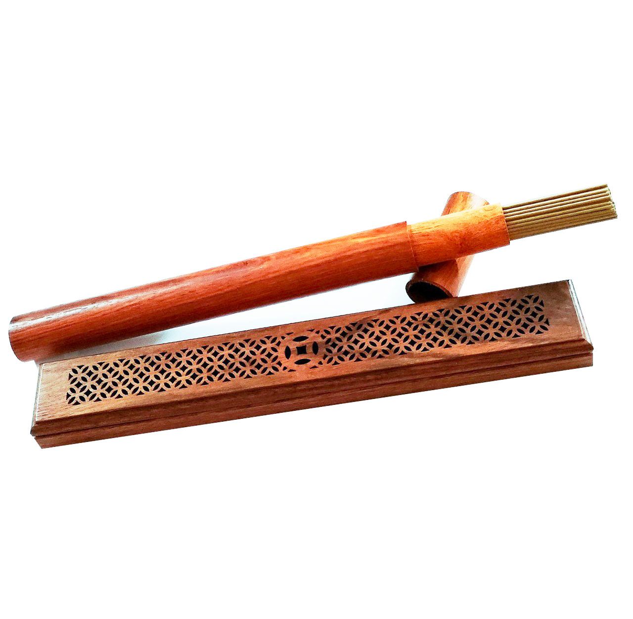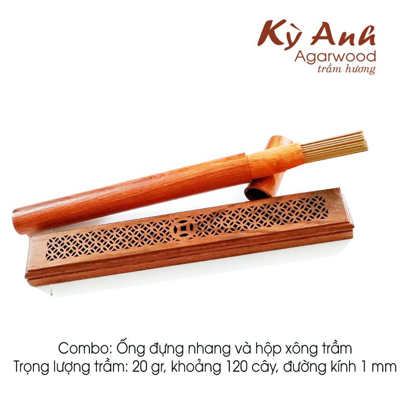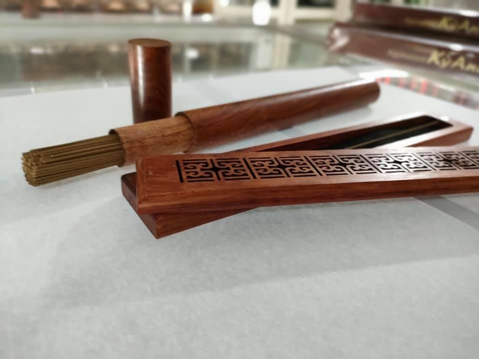 Hộp ngoài đựng ống nhang và hộp gỗ đốt xinh xắn.