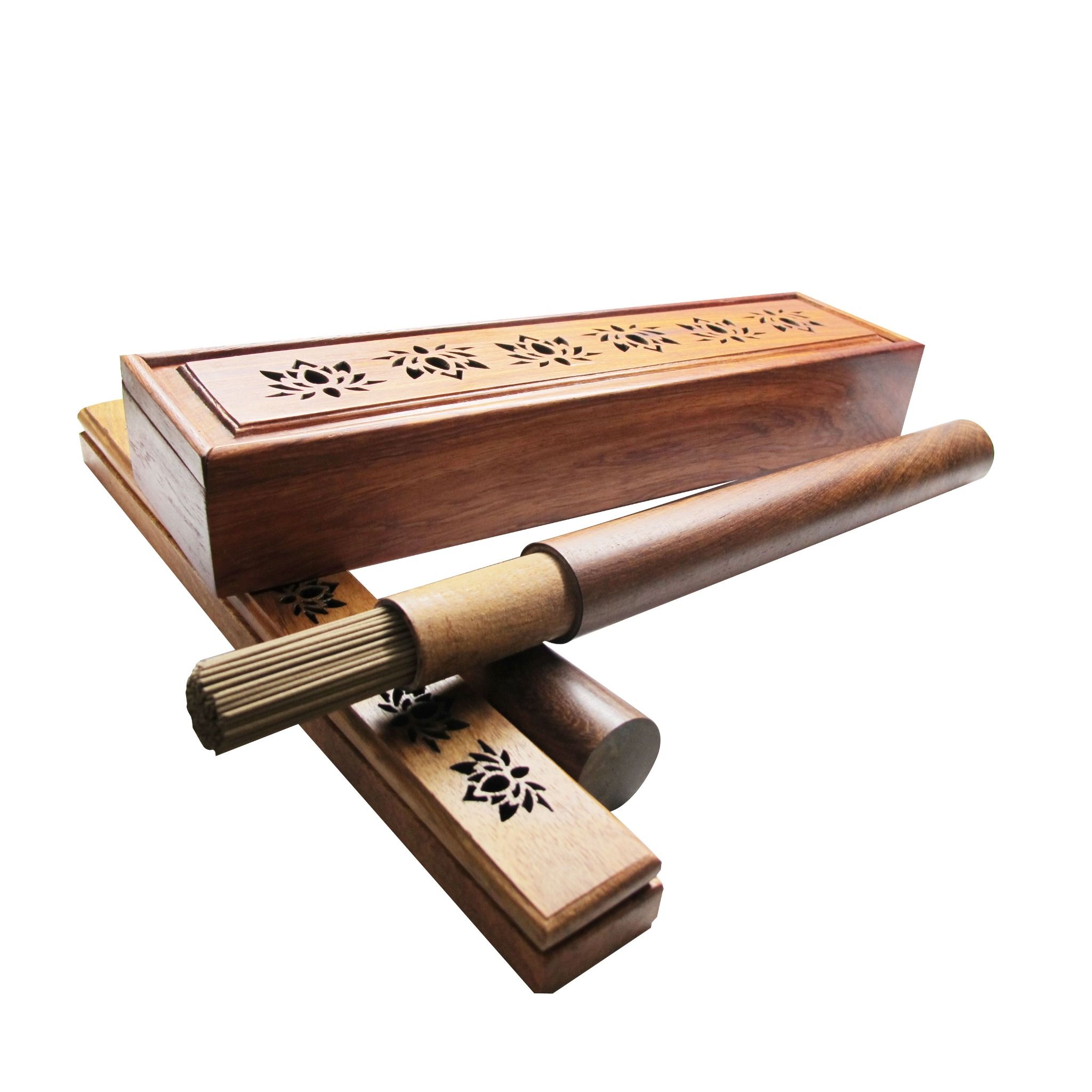Hộp Gỗ Xông hương: có miếng lót chống cháy, chỉ cần đốt thanh trầm và đặt nằm ngang trên miếng lót chống cháy, đậy nắp lại hương thơm sẽ tỏa ra.