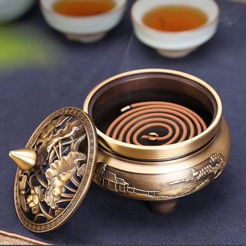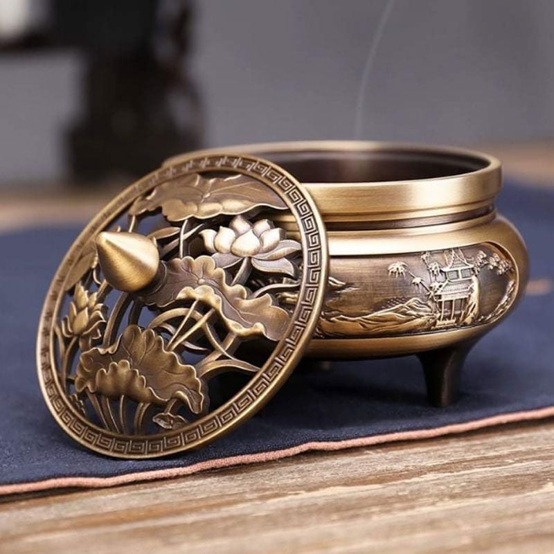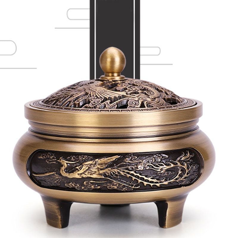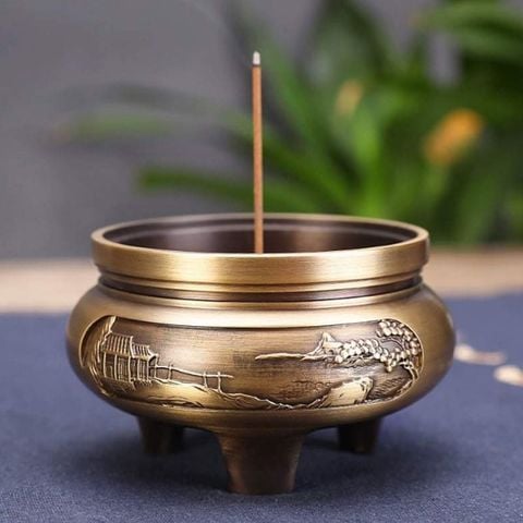 Lư Đỉnh Đồng Trạm Khắc Hoa Văn 3 Chân - DCN111