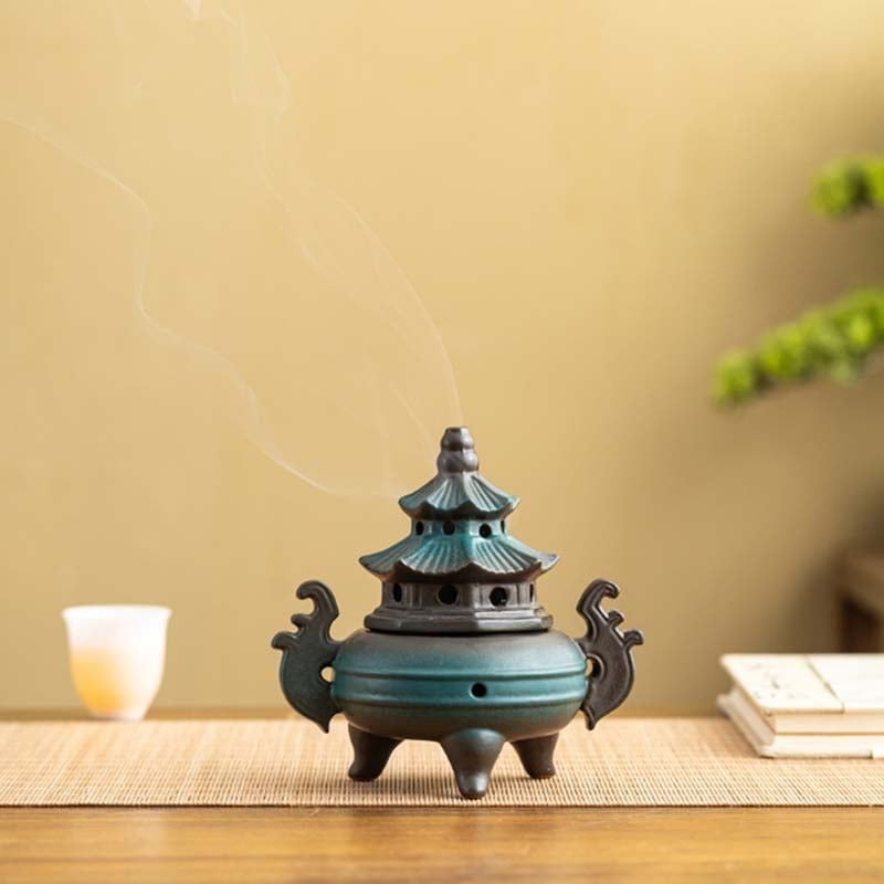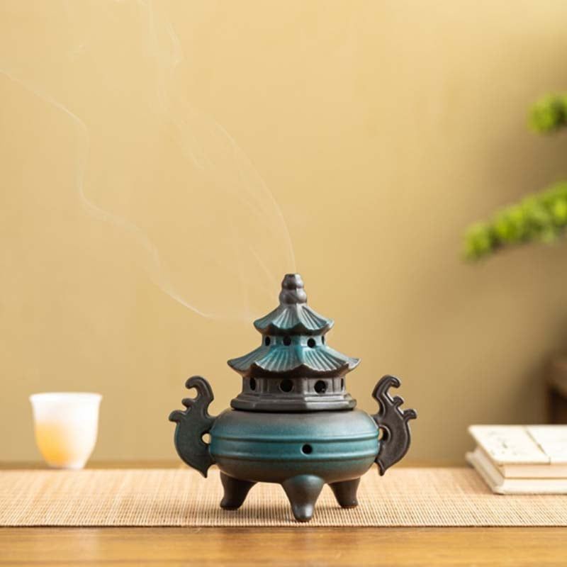 Lư xông trầm hương hình Bát Quái cổ điển là vật phẩm thưởng hương và phong thủy tinh tế, kết hợp hài hòa giữa nghệ thuật truyền thống và công năng hiện đại. Thiết kế mái chùa cổ, thân tròn vững chãi, các lỗ thoát khói được bố trí đều giúp hương trầm lan tỏa nhẹ nhàng, thanh khiết không gian sống.