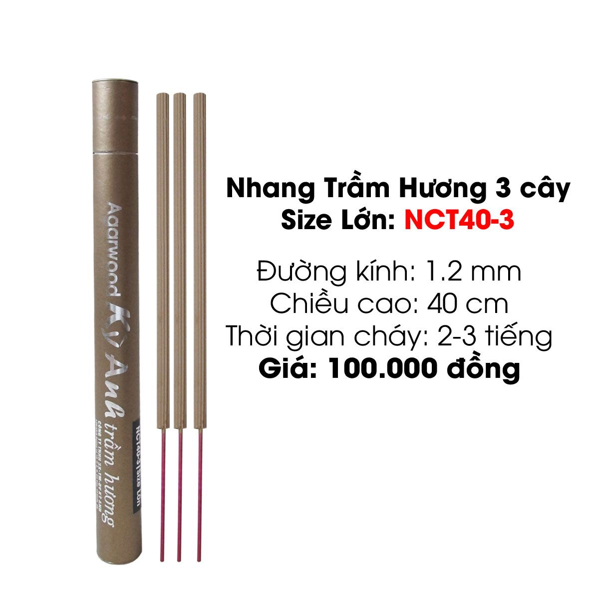 Nhang Trầm Hương Size Lớn 3 cây chiều dài 40 cm- NCT40-3