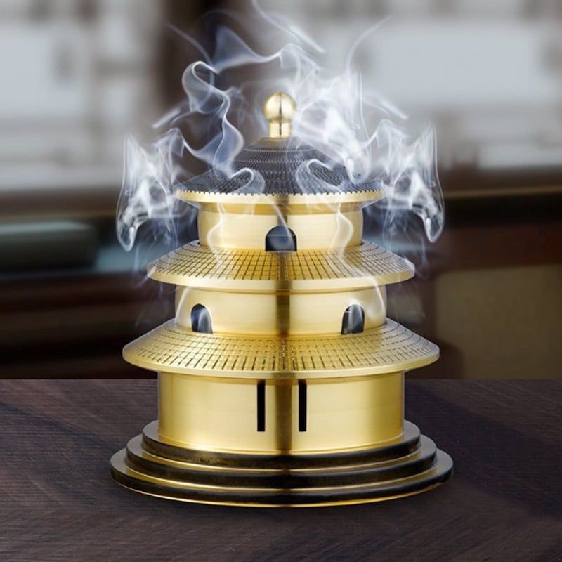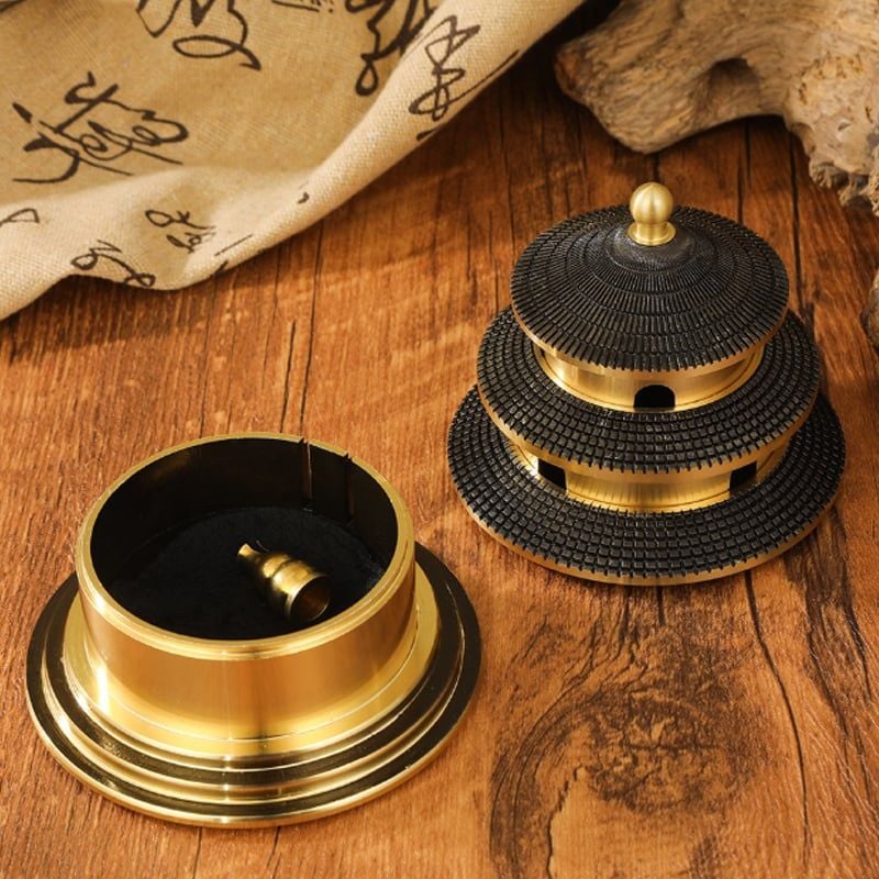 Tháp Hợp Kim Đồng Đốt Trầm Hương – Tạo Vân Mây Linh Khí, Trang Nghiêm & Đẳng Cấp