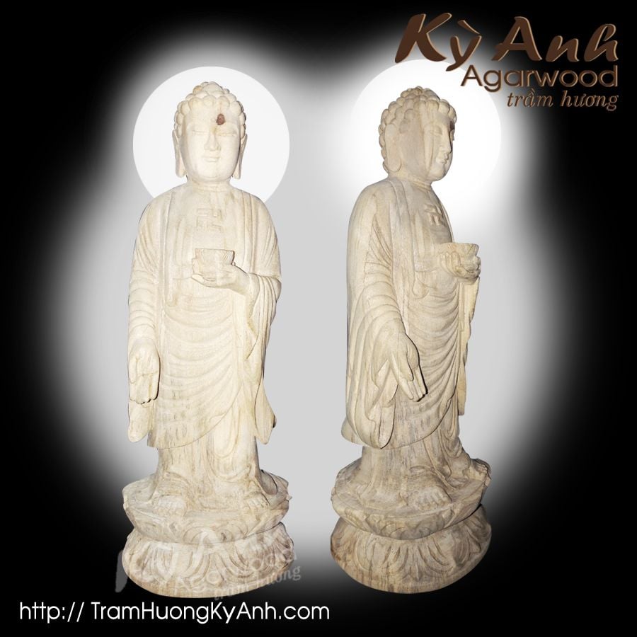 Tượng Phật Di Đà đứng bằng gỗ Long Não