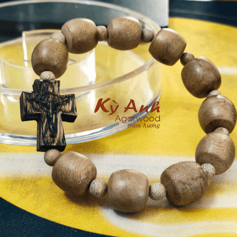 Vòng Trầm Hương Hạt Lu Thống Mix Thánh Giá VHT230229