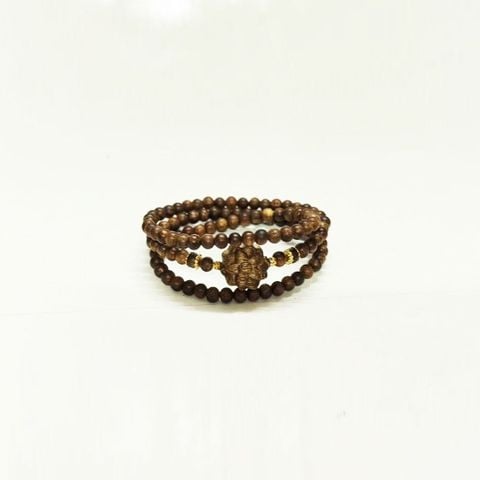 Tên sản phẩm: Vòng Trầm Hương Indo 4mm Mix Hoa Sen quấn 3 vòng dành cho nữ